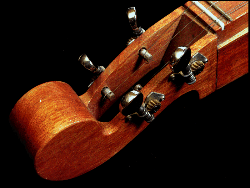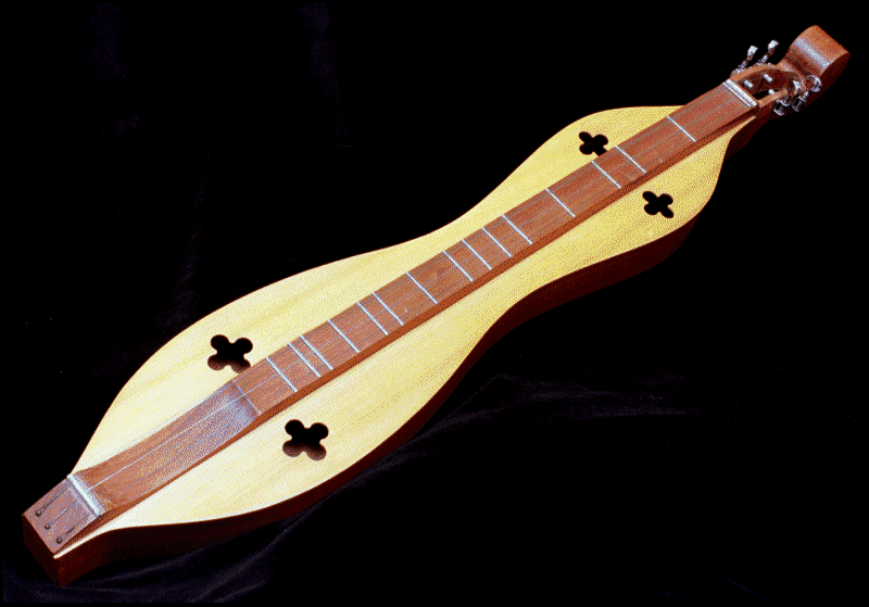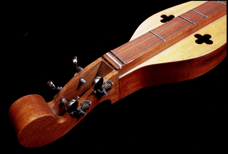 An unknown early American settler had the great idea of combining the fingerboard and brass frets of the cittern/mandolin/guitar families with the hammered dulcimer sound box and he/she came up with a 3 or 4 stringed instrument which - by sliding a wooden "noter" behind each fret - could play about 1½ octaves on the melody string. The other two strings are "drones", an echo of medieval times, sounding the same two notes throughout the melody, in the same way that medieval music used single (keynote) and double drones instead of harmony. You can hear the unusual sound produced by the drone strings in the soundclip. | |||||||